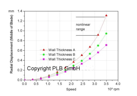 FE Analysis of a fan wheel, parameter: wall thickness (nonlinear material model) |